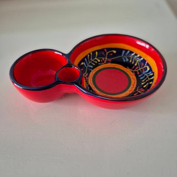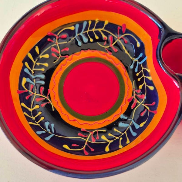 Prachtig tapas schaaltje uit Spanje! Een handgemaakt item van keramiek, en handbeschilderd. Echt een mooie eye-catcher op je gedekte zomerse tafel! Erg makkelijk, ook voor bijvoorbeeld olijfjes of kaasblokjes met mosterd en prikkertjes! Laat de zomer nu maar komen!