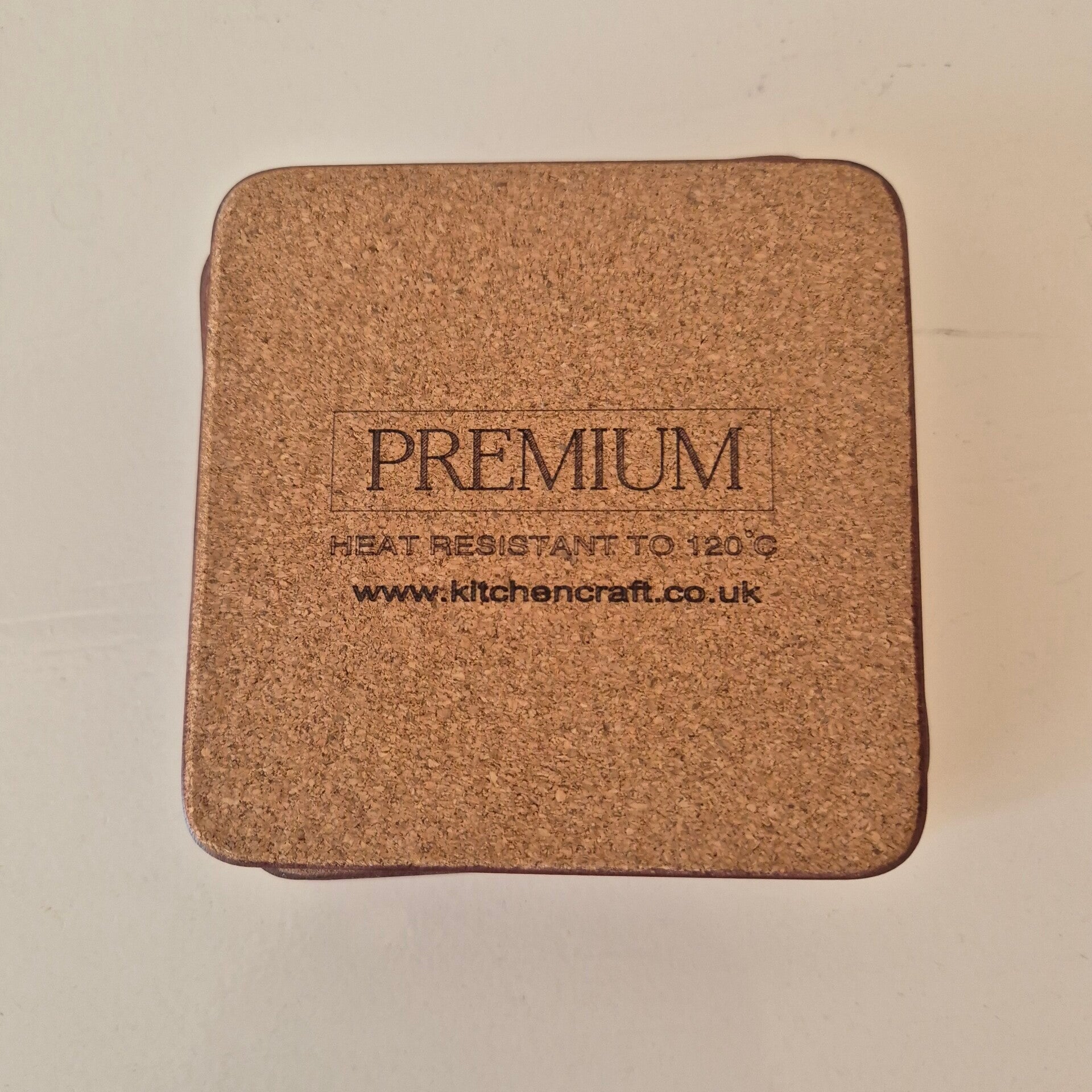 Prachtige set onderzetters, gemaakt van kurk met een bovenlaag bestand tot 12 graden hitte.
