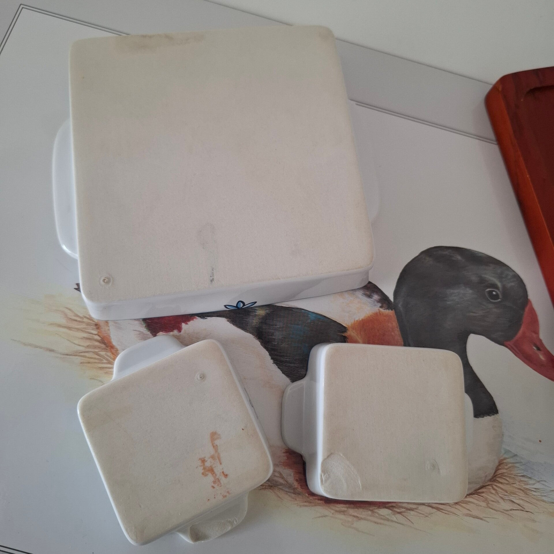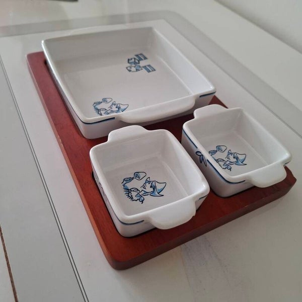 Staat: Vintage, goed, 2 beschadigingen onderkant bakjes, (zie foto`s) bovenkant in goede staat. Prijs is aangepast naar de staat van het artikel.