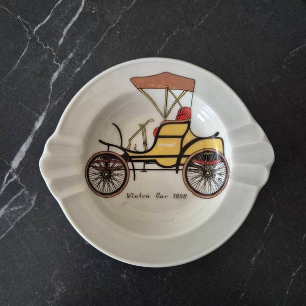 Prachtige vintage asbak met afbeelding van een klassieke auto, de Winston 1898.