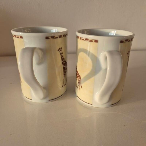Prachtige set mokken met leuke giraffe prints, 2 stuks.