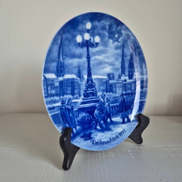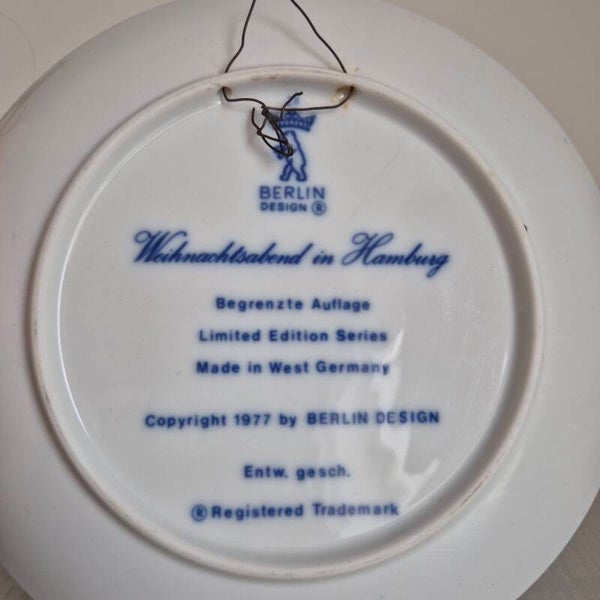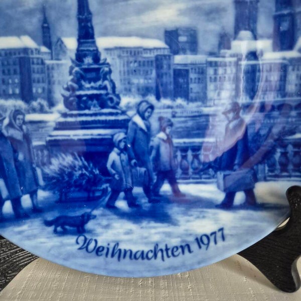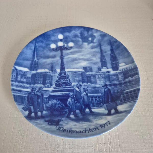 Prachtig porseleinen bord ; Christmas Eve in Hamburg,tijdperk 1977.