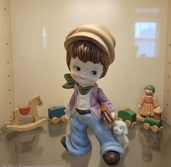 - Invloeden: De vormgeving is sterk geïnspireerd door de beroemde Goebel Hummel-beeldjes uit Duitsland, die vaak kinderen in alledaagse situaties (zoals met een hond of boek) afbeelden in zachte pastelkleuren.