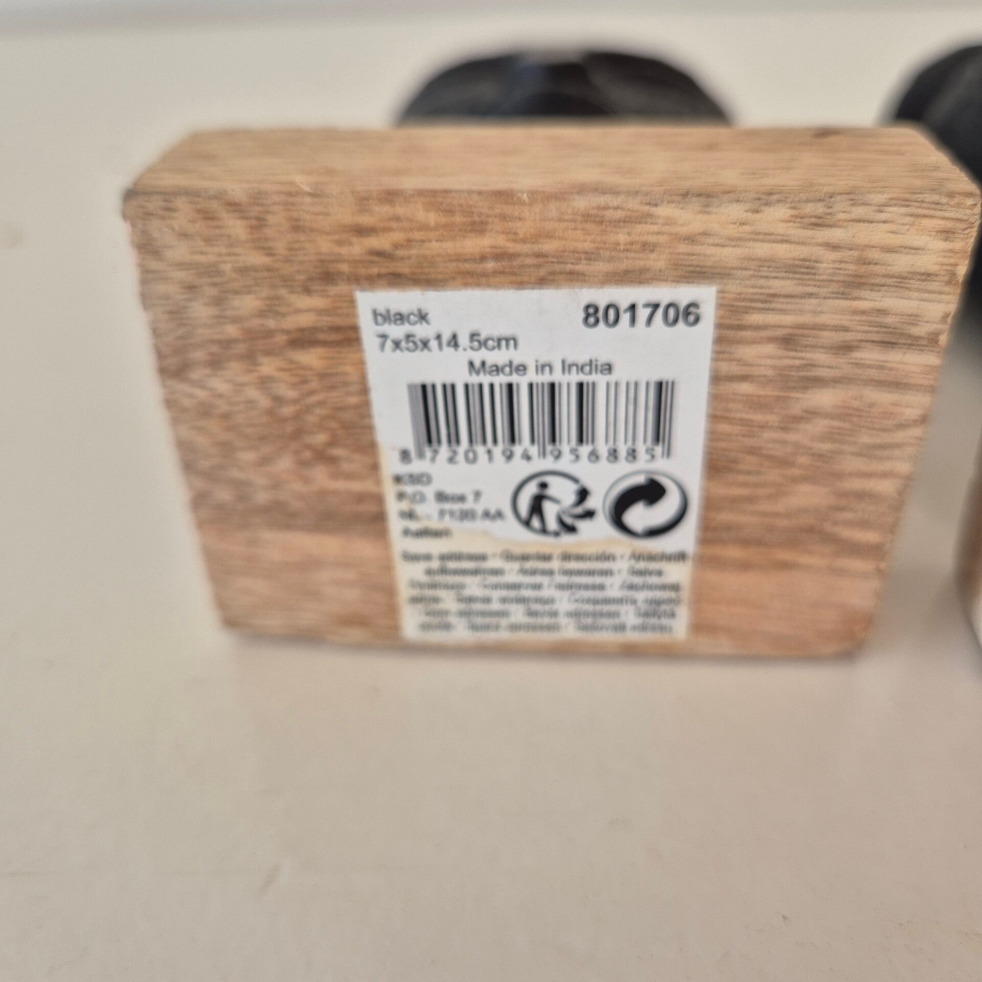 - Materiaal: zwart metaal-achtig materiaal en mangohout.
