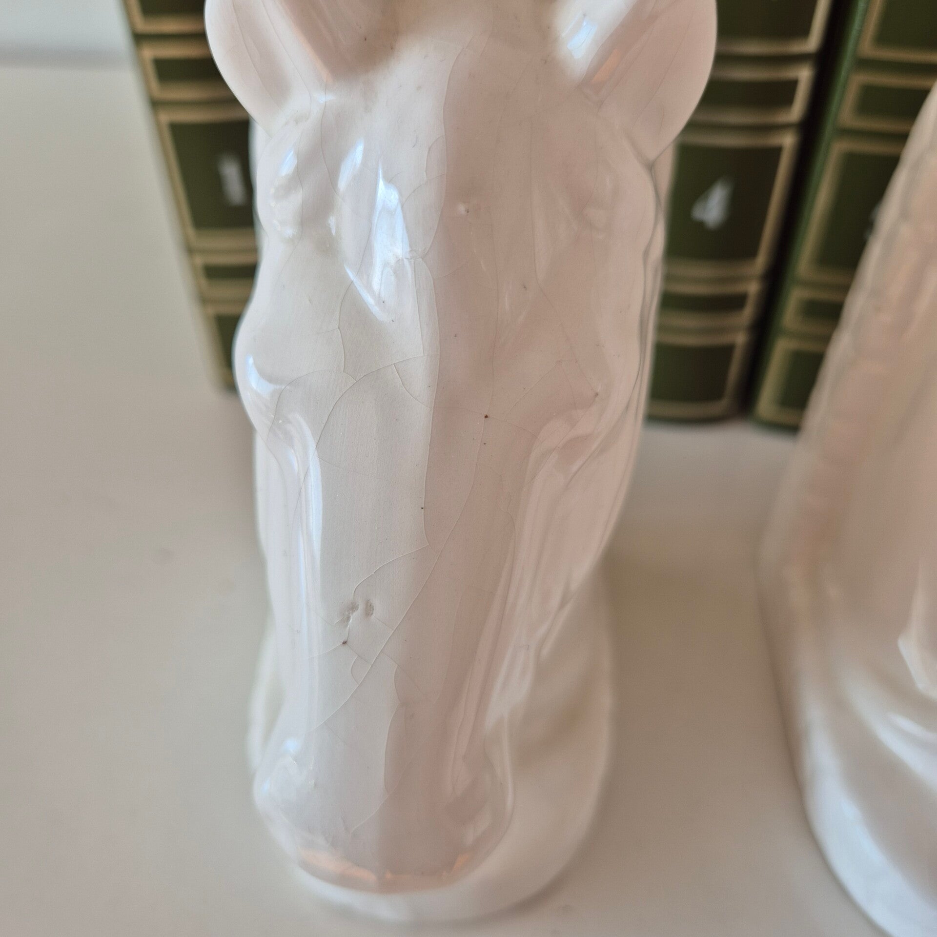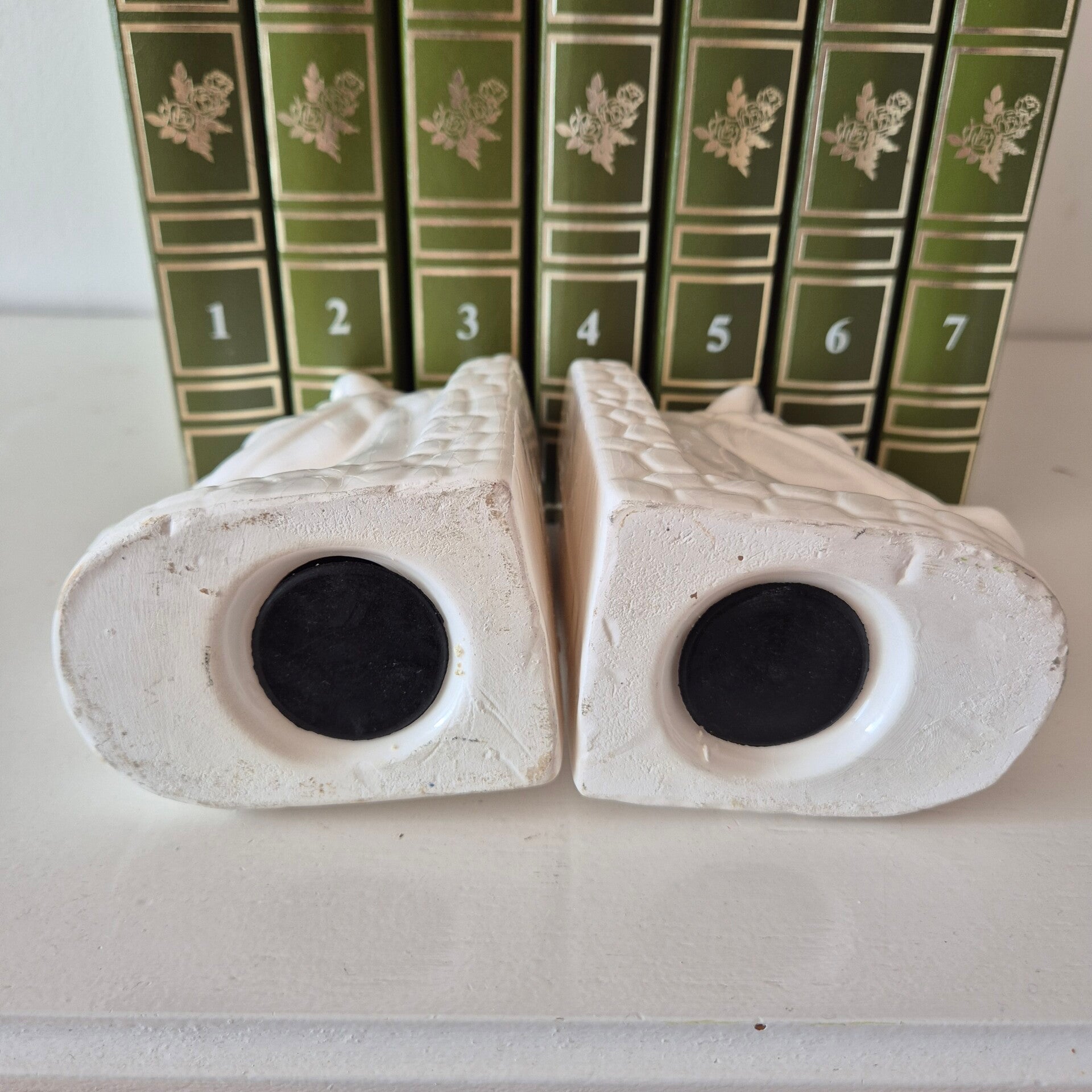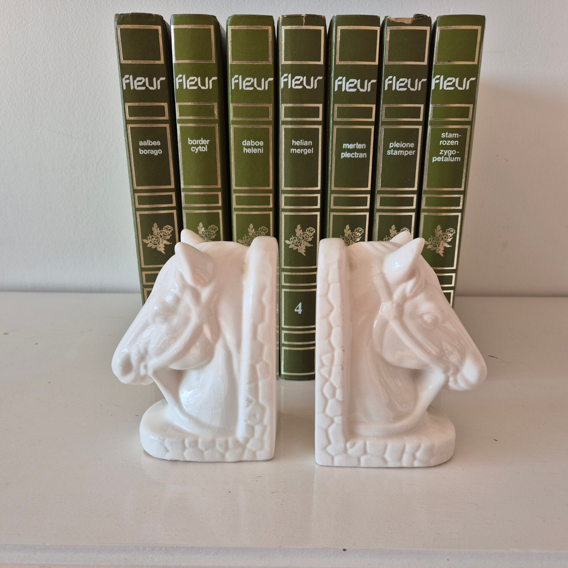 Of ze nu een rij vintage boeken op hun plek houden in de kast, of als losse decoratieve objecten op een dressoir staan: ze trekken direct de aandacht. De subtiele 'craquelé' in het witte glazuur geeft deze set die authentieke vintage uitstraling waar we zo van houden.